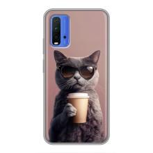 Чехол с принтом стильные животные для Редми 9Т - Кот с кофе