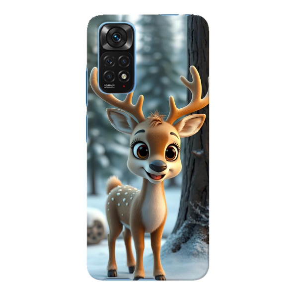 Зимняя коллекция принтов с тёплым сказочным настроением: Блестящий оленёнок, Олень в свитере, Олень с носом, Олень с шарфом, Олень среди подарков, Оленёнок в лесу, Оленёнок среди гирлянд, Оленёнок — выбери свой любимый дизайн для Xiaomi Redmi Note 11E Pro (Редми Нот 11Е Про) и добавь праздничной магии каждый день.