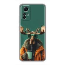 Чехол с принтом стильные животные для Редми Ноут 12с - Лось с кофе