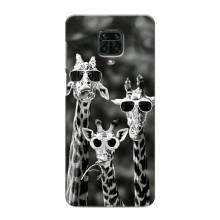 Силиконовый чехол с КАРТИНКАМИ лето для Xiaomi Redmi Note 9 Pro (AlphaPrint) - Жирафы в очках