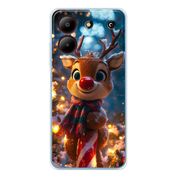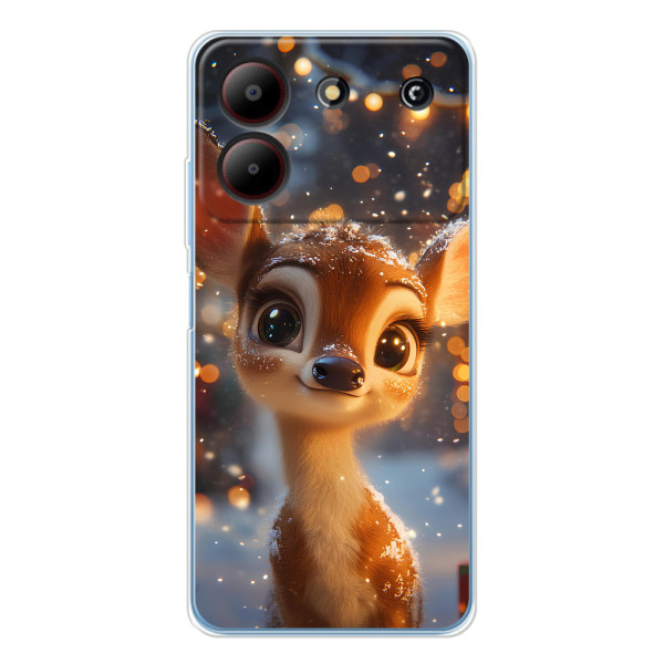 Зимняя коллекция принтов с тёплым сказочным настроением: Блестящий оленёнок, Олень в свитере, Олень с носом, Олень с шарфом, Олень среди подарков, Оленёнок в лесу, Оленёнок среди гирлянд, Оленёнок — выбери свой любимый дизайн для ZTE Blade A54 (ЗТЕ Блейд А54) и добавь праздничной магии каждый день.